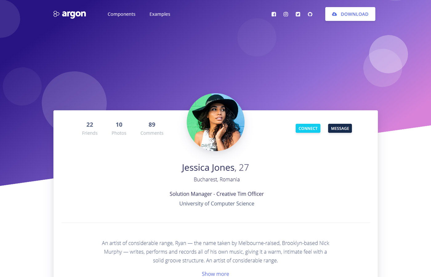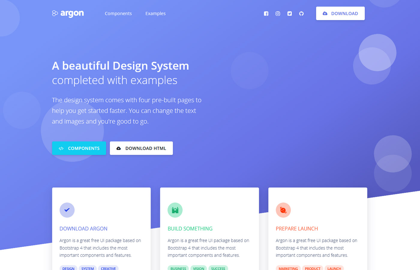 Argon Design System comes with four pre-built pages to help you get started faster. You can change the text and images and you're good to go.